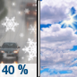 Friday Night - A 30 percent chance of snow. Mostly cloudy, with a low around 17. Northwest wind 5 to 10 mph.