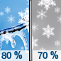 Monday Night - Snow before 2am, then snow, possibly mixed with freezing drizzle between 2am and 5am, then snow after 5am. Low around 13. Southeast wind 5 to 15 mph. Chance of precipitation is 80%. New snow accumulation of less than one inch possible.