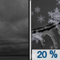 Tonight - A slight chance of snow and freezing drizzle between 3am and 4am, then a chance of freezing drizzle. Cloudy, with a low around 24. East southeast wind around 5 mph. Chance of precipitation is 20%.