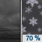 Sunday Night - Snow likely, mainly after 3am. Cloudy, with a low around 21. North northeast wind 5 to 10 mph. Chance of precipitation is 70%. New snow accumulation of less than a half inch possible.