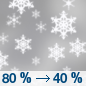 Monday - Snow, mainly before noon. Temperature falling to around 12 by 5pm. Northwest wind 10 to 15 mph. Chance of precipitation is 80%. New snow accumulation of 1 to 3 inches possible.