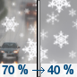Thursday - Snow likely, possibly mixed with rain, becoming all snow after 11am. Cloudy, with a high near 36. Breezy, with a west northwest wind 15 to 20 mph, with gusts as high as 30 mph. Chance of precipitation is 70%. New snow accumulation of 1 to 2 inches possible.