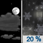 Monday Night - A slight chance of snow showers between 1am and 4am, then a slight chance of rain showers after 4am. Partly cloudy, with a low around 33. East wind 5 to 10 mph. Chance of precipitation is 20%.