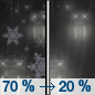 Thursday - A 20 percent chance of snow. Partly sunny, with a high near 28. Northeast wind around 10 mph.