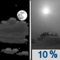 Sunday Night - A 20 percent chance of snow before midnight. Patchy blowing snow between 9pm and midnight. Mostly cloudy, with a low around 19. North northwest wind around 15 mph, with gusts as high as 25 mph.