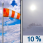 Friday Night - A 20 percent chance of snow. Patchy blowing snow. Mostly cloudy, with a low around 10. Blustery, with a west northwest wind 15 to 20 mph, with gusts as high as 30 mph.