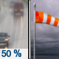 Today - Rain, mainly after 2pm. High near 54. Breezy, with an east wind 5 to 10 mph increasing to 15 to 20 mph in the afternoon. Winds could gust as high as 35 mph. Chance of precipitation is 100%. New precipitation amounts between a quarter and half of an inch possible.
